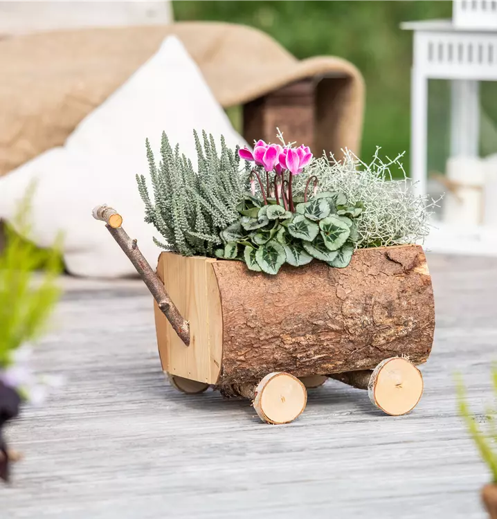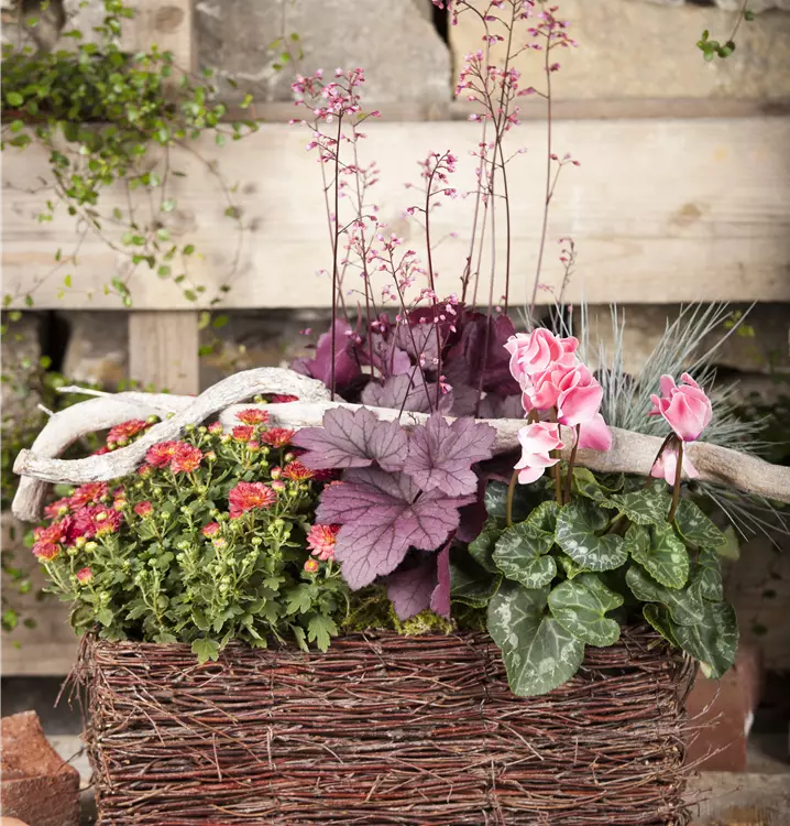 Das Herbst-Alpenveilchen (Cyclamen hederifolium) bringt ansehnliche, pinke, weiße, rosafarbene Blüten von September bis November hervor. Zudem trägt es dekorative, herzförmige, grün-weiße Blätter. Es bevorzugt durchlässigen, humosen, lockeren, nährstoffreichen Boden in sonniger bis halbschattiger windgeschützter Lage. Die aufrechte Pflanze erreicht gewöhnlich eine Höhe von 10 - 15 cm und wird bis zu 15 cm breit.