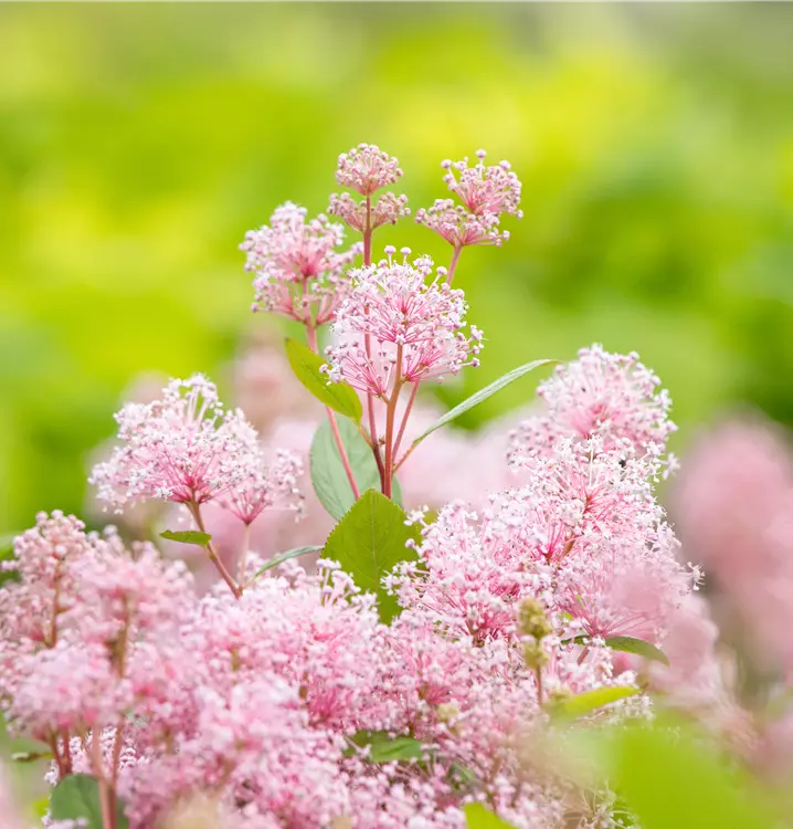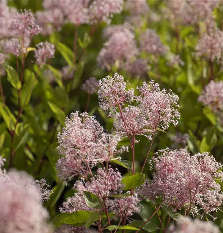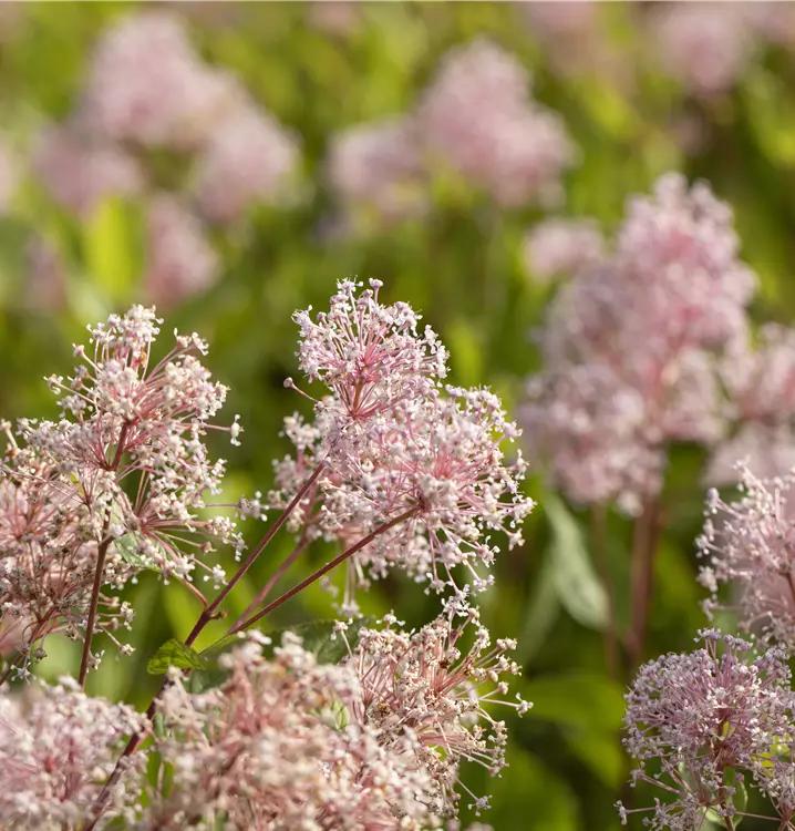 Die rosafarbenen Blüten erscheinen von Juli bis Oktober.