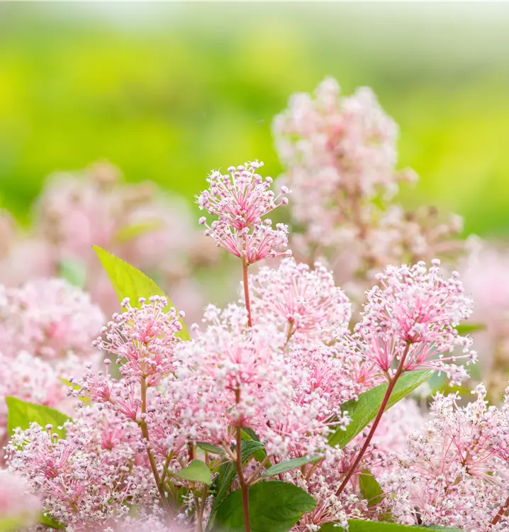 Die Säckelblume 'Marie Simon' (Ceanothus pallidus) ist ein buschiger, verzweigter Strauch, der rosafarbene Blüten hervorbringt. Sie erscheinen von Juli bis Oktober. Aus diesen gehen schwarz-rote Früchte hervor. Zudem trägt die Säckelblume 'Marie Simon', lanzettliche, mittelgrüne Blätter. An einem sonnigen, windgeschützten Standort mit durchlässigem, nährstoffreichem Boden erreicht sie gewöhnlich eine Höhe von ca. 1,5 m und wird ca. 1,2 m breit.