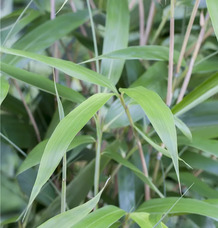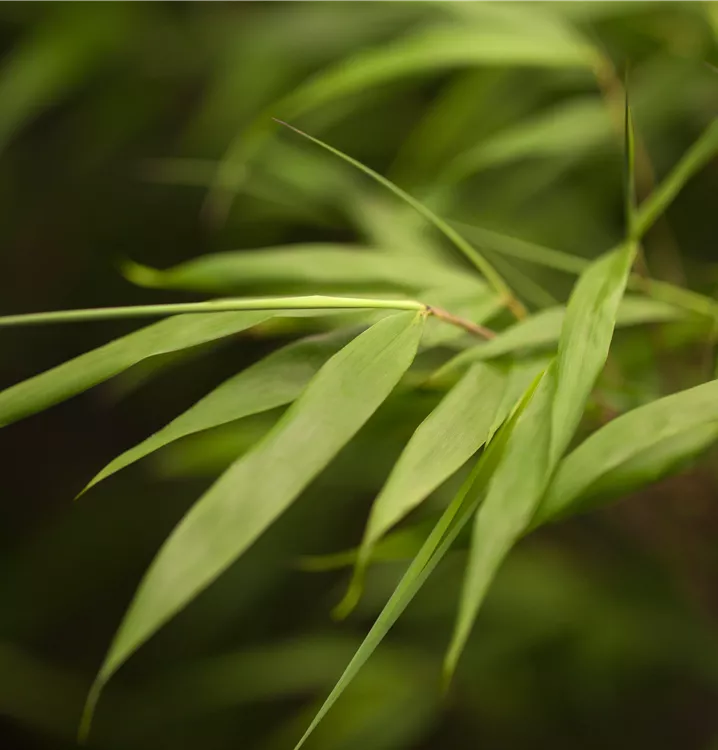 Die immergrünen Blätter des Bambuses 'Asian Wonder' sind dunkelgrün, lanzettlich.