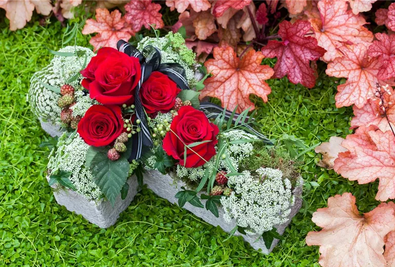 Eigentlich gibt es bei der Auswahl der Blumen auf dem Grab kein richtig oder falsch. Gepflanzt werden darf das, was persönlich gefällt oder die liebsten Blumen des Verstorbenen waren. Wer wenig Zeit für die Grabpflege hat, oder weiter weg wohnt, der kann auf Bodendecker zurückgreifen. Die sorgen vor allem bei anhaltender Hitze im Sommer dafür, dass das Grab nicht vertrocknet und unschön aussieht. Bodendecker sind langsam wachsend und kommen den ein oder anderen Tag ohne frisches Wasser aus. Dazu passen dann im Sommer eigentlich alle Blumen, die Saison haben. Wichtig ist, dass die Pflanzen keine allzu hohen Ansprüche haben. Die Erde auf dem Grab ist nicht immer sehr nährstoffreich und deshalb eignen sich Mauerpfeffer, Königskerzen, Schafgarbe oder Wolfsmilch sehr gut. Sie kommen gut mit trockenen und sandigen Böden zurecht.
