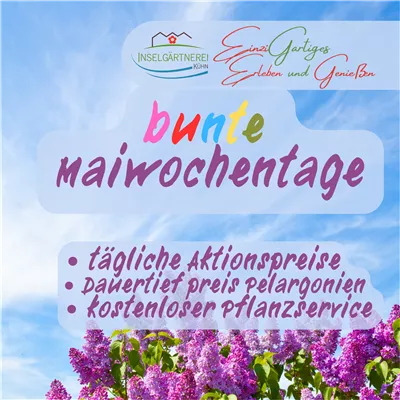 An jedem Maiwochentag spielen wir unseren speziellen Standortvorteil aus: Aktionspreise auf von uns produzierte Sommerblumen, Kräuter- sowie Gemüsepflanzen