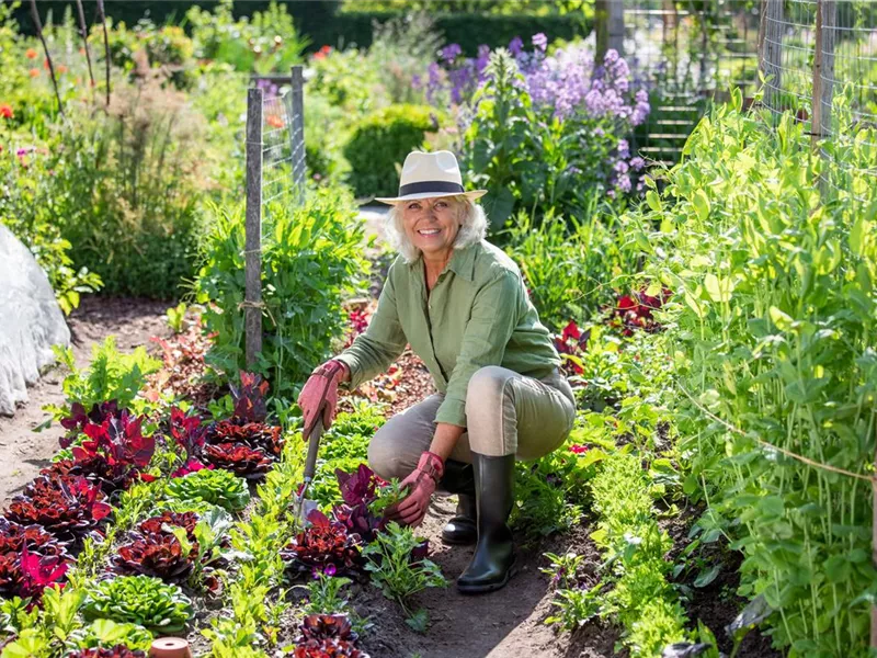 Gartenarbeit - Frau mit Salat und Gartenschaufel