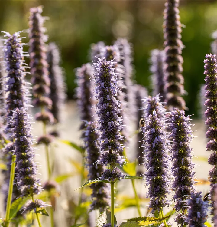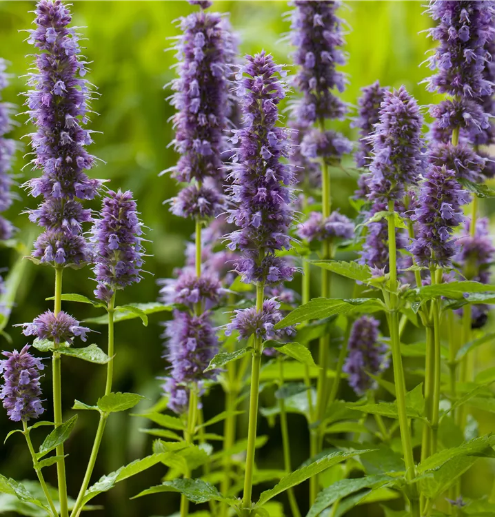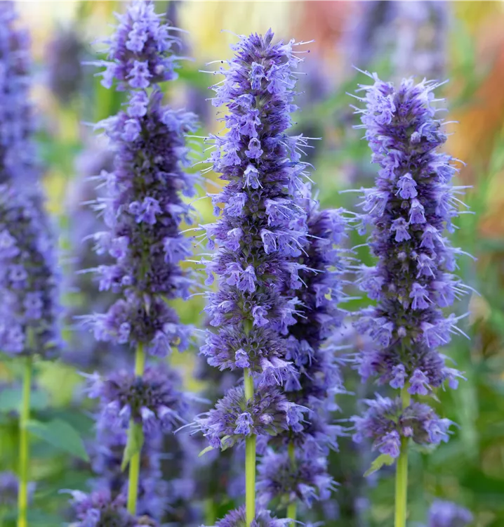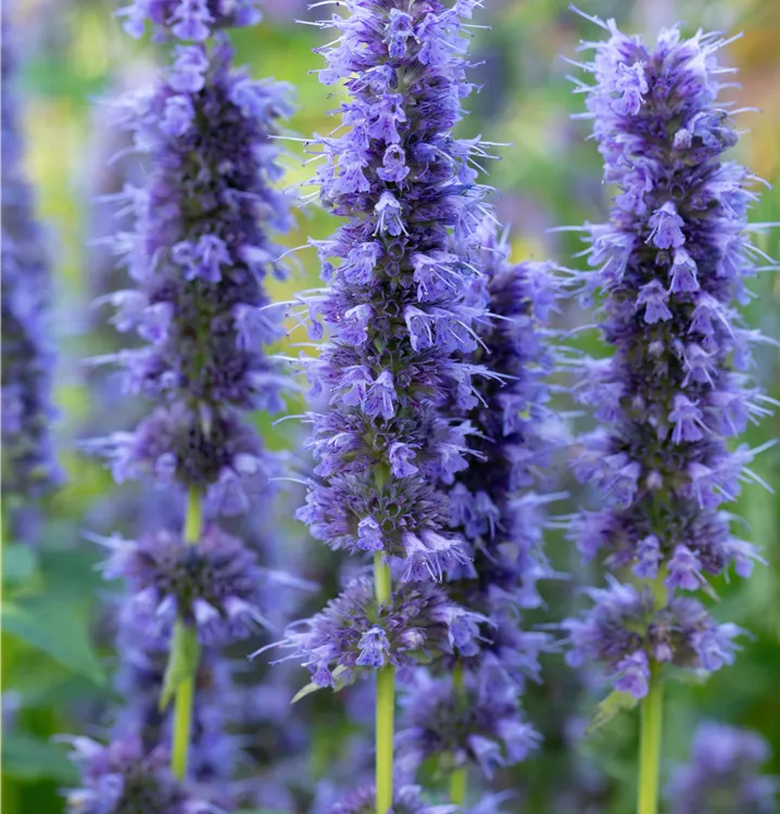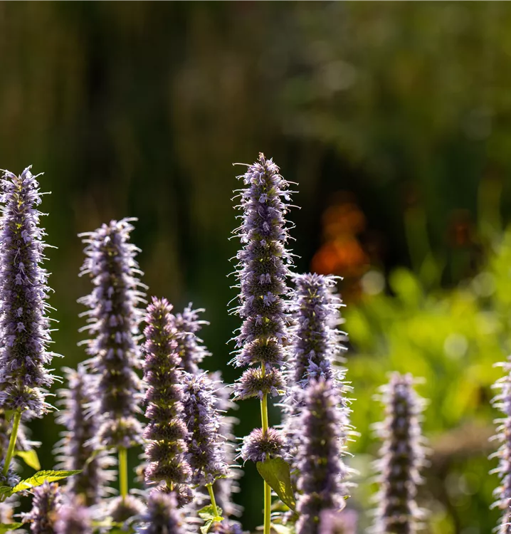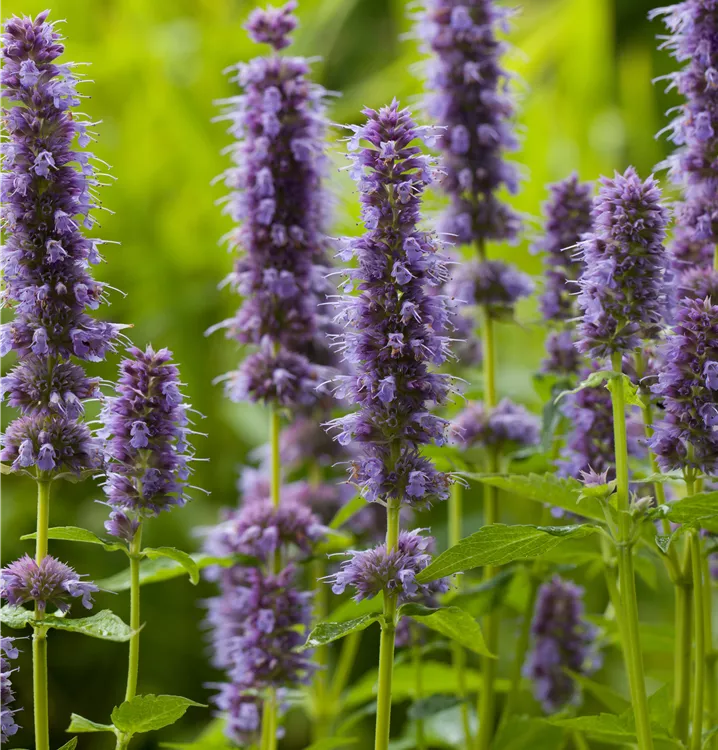Agastache rugosa 'Blue Fortune' bildet lippenförmige, in Ähren angeordnete, blauviolette Blüten ab Juli. Diese verströmen einen angenehmen Duft.