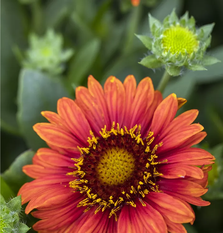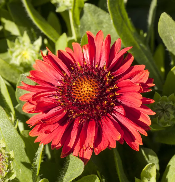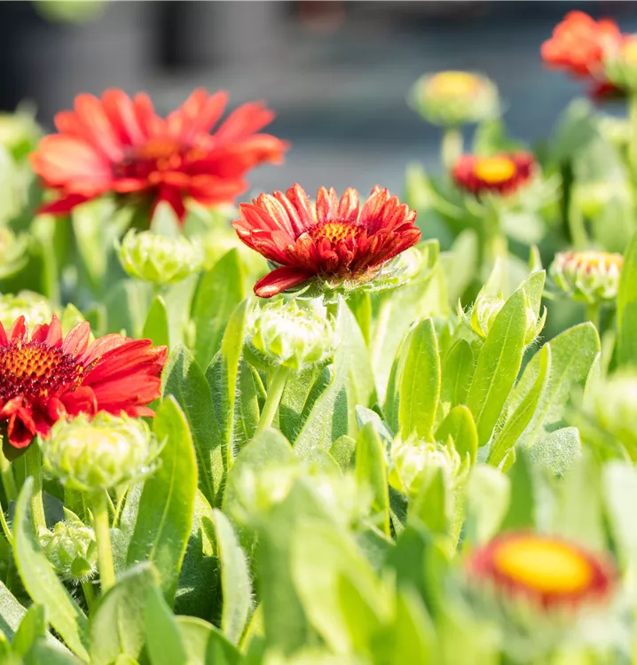 Gaillardia aristata SpinTop® 'Red' bildet rote Blüten ab Juli.