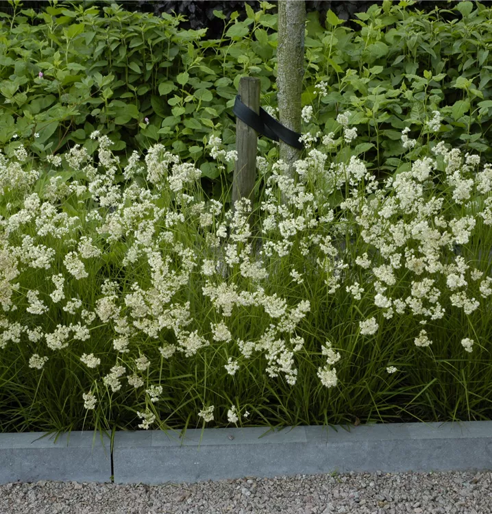 Die Schnee-Hainsimse (Luzula nivea) ist mit ihrer mittelgrünen Blattfärbung ein dekoratives Gestaltungselement im Garten, welches ebenso mit seinem buschigen, breiten und dichten Wuchs hervorsticht. Die weißen Blütendolden schmücken diese Gras ab Sommer. An einem halbschattigen Standort mit einem möglichst durchlässigen, humosen Boden fühlt sie sich am wohlsten. Bei günstigen Bedingungen erreicht dieses winterharte Gras eine Höhe von ca. 20 cm und wird bis zu 20 cm breit.